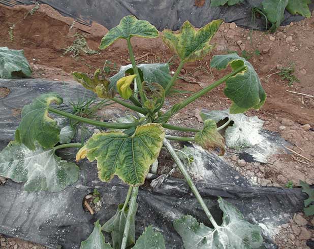 Hongo externo microscópico que recubre las hojas y tallos de un polvo color ceniza o blanco. Este hongo ataca preferentemente a comienzos del verano, con el ascenso de la temperatura.