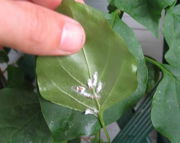 Insectos chupadores, cuyas hembras se fijan a las plantas como escamas, en ocasiones protegidas por sus propias secreciones algodonosas. Pueden atacar tanto a las hojas, como a los frutos, las ramas y el tronco. Provocan la caída de las hojas y de los frutos.